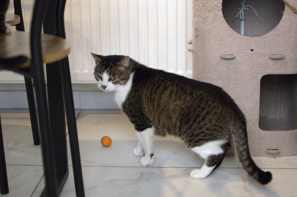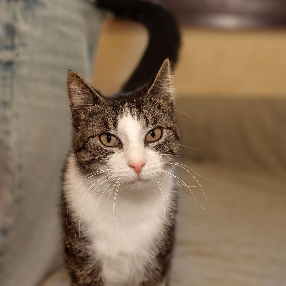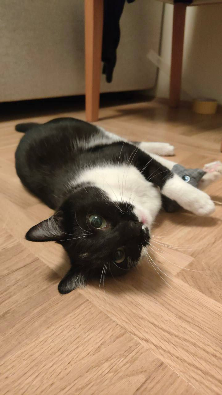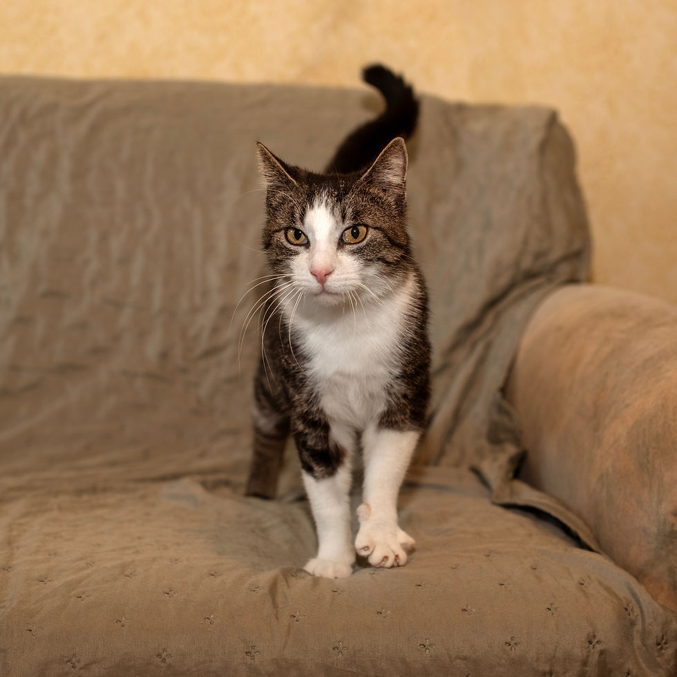 Молодой, ласковый и активный кот. Любит внимание и общение, при этом не очень комфортно чувствует себя, когда трогают мордочку.